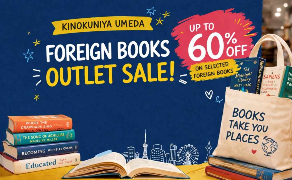 「Foreign Books Big Outlet Sale」は、2026年4月7日から4月21日まで、紀伊國屋書店梅田本店のイベントコーナーで行われています。対象商品は最大60%オフで、イベントページによると、アウトレット本は毎日補充されます。小説、翻訳コミック、ビジュアルブック、人文書、社会科学、科学、子ども向け書籍まで、幅広いジャンルがそろっています。